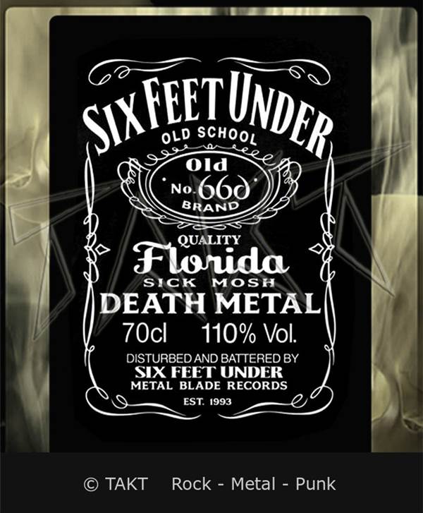 Barva: černá. Materiál: kvalitní 100% bavlna. Technologie: sítotisk. Potisk na přední a zadní straně trička. Fanouškovi by nemělo chybět tričko Six Feet Under v šatníku. Příklad rozměru vzorku velikost L: délka cca - 75 cm, šířka - cca 55 cm.