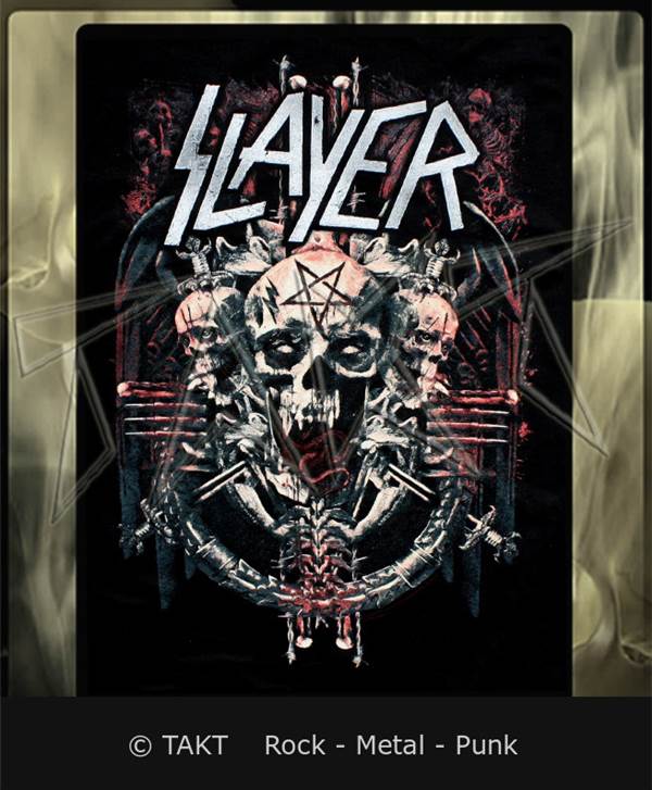 Materiál: kvalitní 100% bavlna. Technologie: sítotisk. Potisk na přední a zadní straně trička. Fanouškovi by nemělo chybět tričko SLAYER v šatníku. Rozměr: vel. L cca délka 74 cm, šířka 55 cm Licence - SLAYER