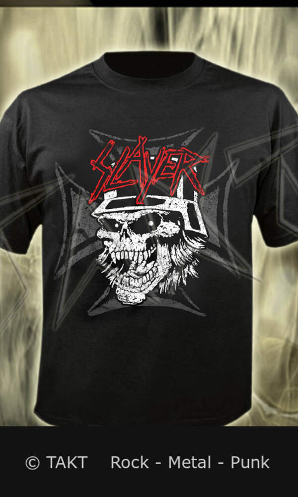 Materiál: kvalitní 100% bavlna. Technologie: sítotisk. Potisk na přední straně trička. Fanouškovi by nemělo chybět tričko SLAYER v šatníku. Rozměr: vel. XL cca délka 76 cm, šířka 62 cm Licence - SLAYER