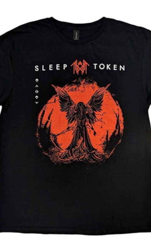Tričko Sleep Token - Take Me Back To Eden představuje dokonalý způsob, jak vyjádřit svou oddanost této jedinečné kapele. Toto černé tričko zaujme výrazným potiskem na přední straně, kde je zobrazen anděl v temné siluetě na pozadí krvavě rudého měsíce. Nad tímto uměleckým dílem se nachází logo kapely Sleep Token, které dokonale ladí s celkovým designem.