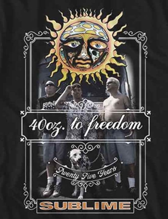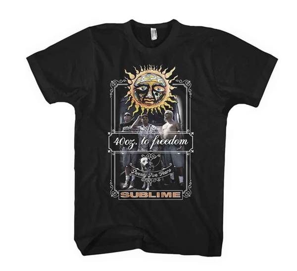 Toto tričko je vyrobené ze 100% bavlny, má jednoduchý střih a černou barvu, díky které potisk na přední straně výborně vynikne. Motiv odkazuje na 40oz. to Freedom, tedy titul, který je s tvorbou Sublime úzce spojený a patří k nejvýraznějším symbolům kapely. Nápis 25 Years dodává celému provedení výroční atmosféru a posouvá Tričko Sublime - 25 Years od běžného potisku k výraznějšímu fanouškovskému motivu.