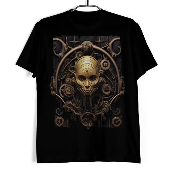 Tričko - Timeless Beauty nabízí okouzlující a záhadný pohled na to, co by se mohlo zdát být spojení času a věčné krásy. Na tričku je zobrazena hlava ženy, která se zdá být usazená v hodinovém stroji s ozubenými koly. Barvy hnědé a světle hnědé tvoří teplou a záhadnou atmosféru, zatímco obdelníkový barevný podklad dodává celému obrazu optickou hloubku. Tento návrh je skvělý pro ty, kteří chtějí spojit technickou preciznost s přirozenou ženskou krásou.
