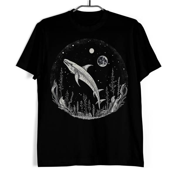 Tričko - Vesmírný oceán tě zavede do světa, kde se snoubí vize dobrodružství s tajemstvím kosmu. Černobílé tričko vás zavede na cestu pod hladinou moře, kde vodní rostliny tančí mezi hvězdami a obrovská ryba plave v náručí vesmíru. Umění, které překračuje čas a spojuje nespojitelné.