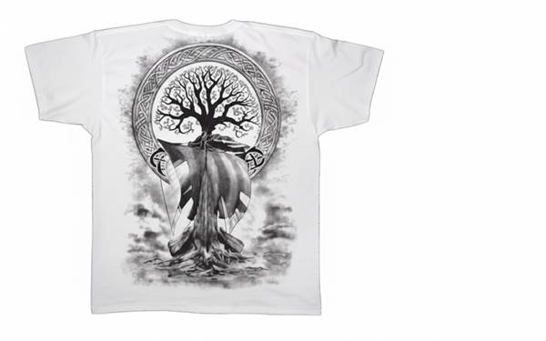 Materiál: 100% bavlna, velmi dobrá kvalita. Rovný střih. Barva: bílá. Potisk je na velké ploše na přední a zadní straně trička a také na rukávech.