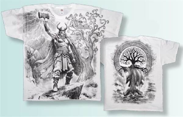 Tričko Viking – Thor Valhall je vyrobeno z vysoce kvalitní 100% bavlny, což zaručuje pohodlí při nošení a dlouhou životnost. Potisk pokrývá velkou plochu na přední i zadní straně trička, včetně rukávů, a díky detailnímu zpracování působí jako skutečné umělecké dílo. Bílý podklad krásně zvýrazňuje černobílý motiv s výrazným kontrastem.