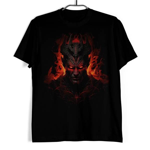 tričkem - Vládce plamenů. Tento intenzivní design v sobě nese obraz mocné bytosti, jejíž oči žhnou s nezkrotnou energií živého ohně. Dramatické stínování a ohnivé barvy vytvářejí dojem, že tento vládce vystupuje přímo z hlubin rozpáleného pekla. Toto tričko je dokonalým výběrem pro ty, kdo hledají oblečení s charakterem, které odráží sílu, vášeň a nekonečnou energii.