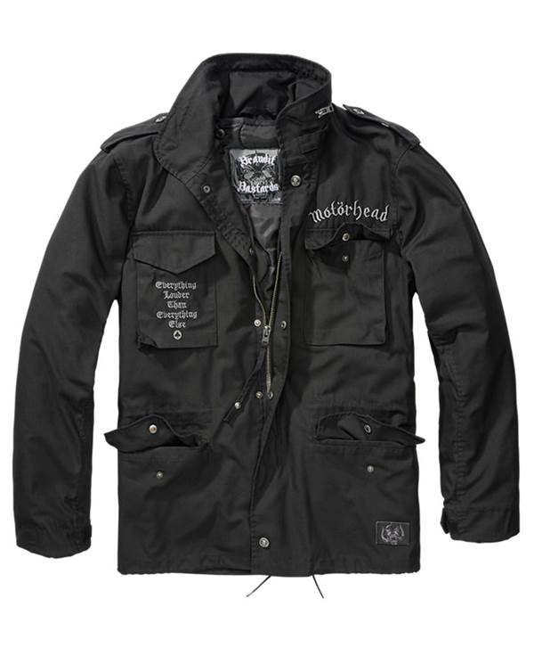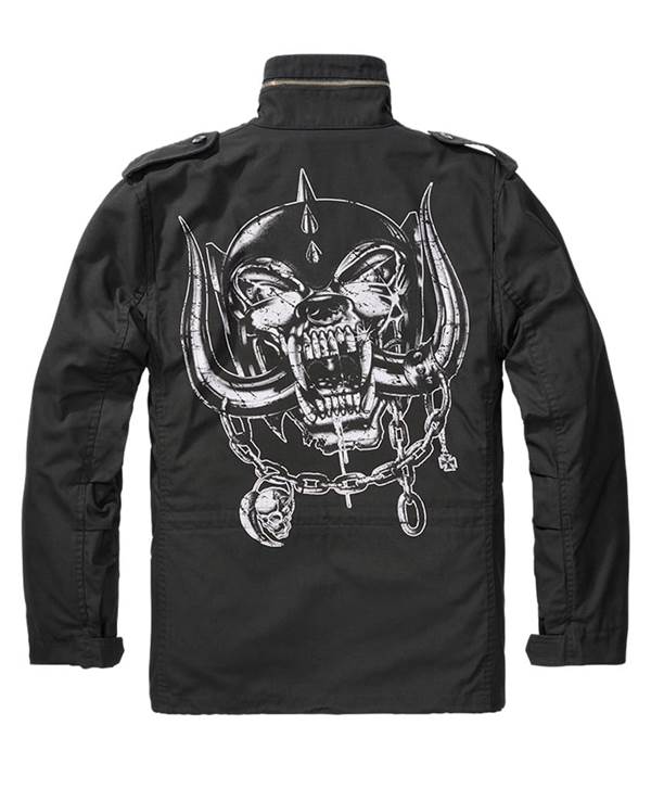 Licence Import - Materiál: vnější 80% polyester,20% bavlna; podšívka 100% bavlna. Barva: černá. Senzační zateplená bunda s odnímatelnou podšívkou (zapínání na bundu je na knoflíky). Bunda se zapíná na zip a navíc na cvoky. Vepředu jsou našité čtyři kapsy - dvě spodní a dvě horní - všechny se zapínají na patentku. V límci je skrytá kapuce. Bunda je bohatě zdobena motivy kapely MOTORHEAD vč šedo stříbrné výšivky na přední části bundy a obrovským potiskem na zadní straně celé zadní části bundy. Kromě toho má také kovovou sponu u krku zdobenou logem Warpig a nášivku připomínající kůži ve spodní části bundy a ražbu na zipech.